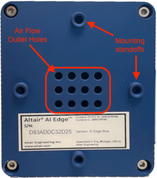Note: Although the enclosure is designed to resist dust and moisture, it is not a sealed device. Altair® AI Edge™ devices should be visually inspected periodically to ensure relative cleanliness and low moisture.