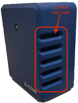 Note: There is a thin layer of air filtration media on the inside of both the air inlet slots and the air outlet holes. This filtration media is not customer-accessible. If you believe that the media has become unable to allow air to flow freely, please contact Altair Support.