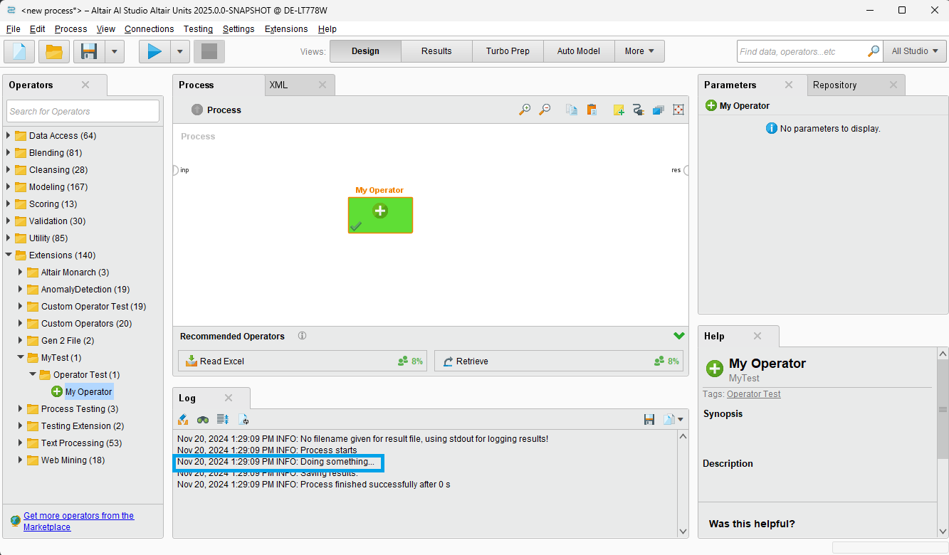At this point you can already build the extension and use it in Altair AI Studio. You could see the operator in the Operator Tree, but its name would be the key.