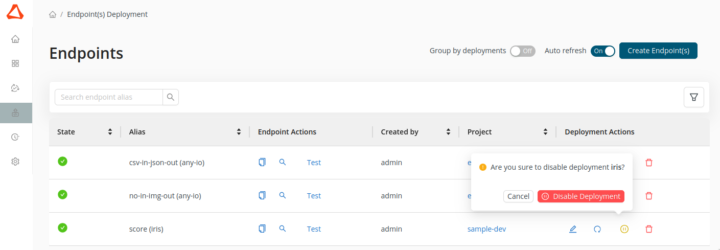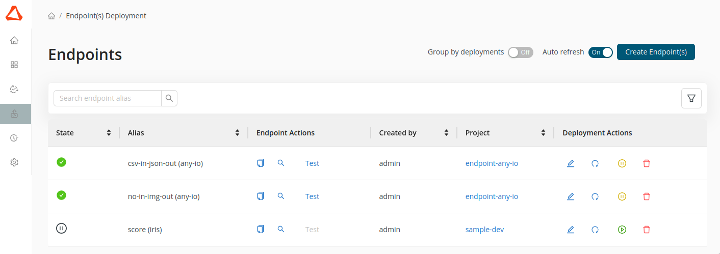 Endpoints can be paused anytime meaning they're skipped during distribution to Web API Agents, but not permanently deleted. The deployment status can be changed anytime by clicking the Pause button.