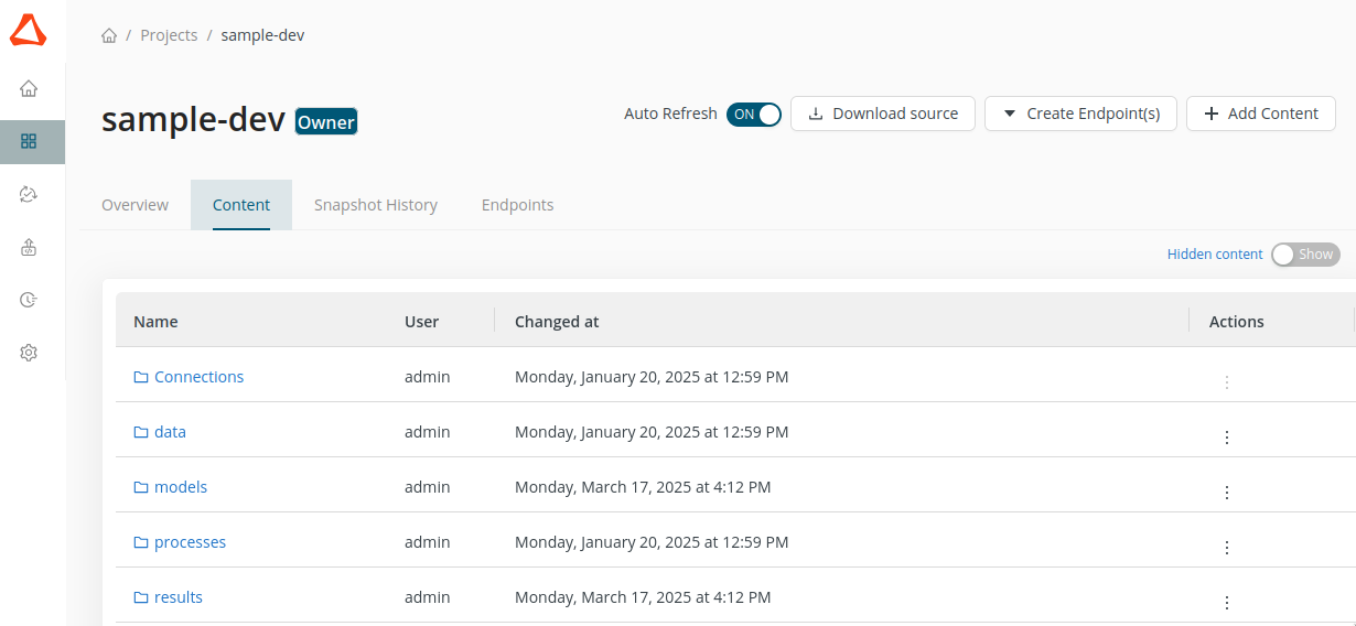 In the screenshot below, you can see the contents of the sample-dev folder, as described in Create a process.