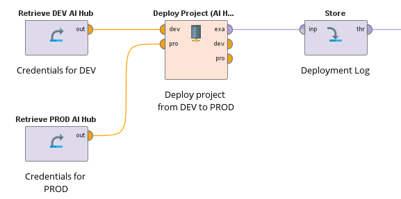 Users will need connection credentials with appropriate privileges of both AI Hubs (e.g. from DEV to TEST) to create specialized AI Hub connection objects. These are the inputs of the operator, the source and target project are defined in the parameters panel.